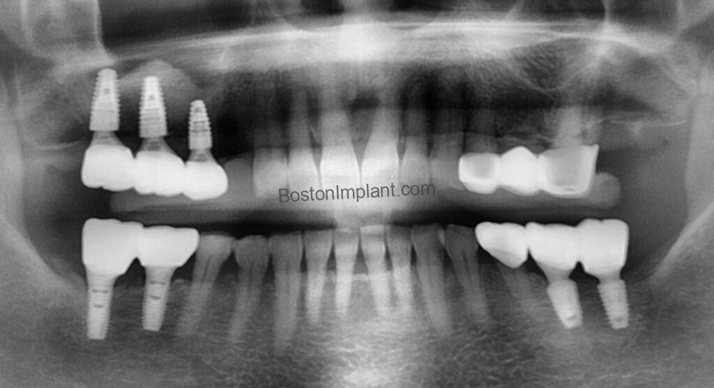 2. Phase 2: We placed implants in the other areas—the upper left and both lower sides—where the bone was sufficient and did not require complex grafting.