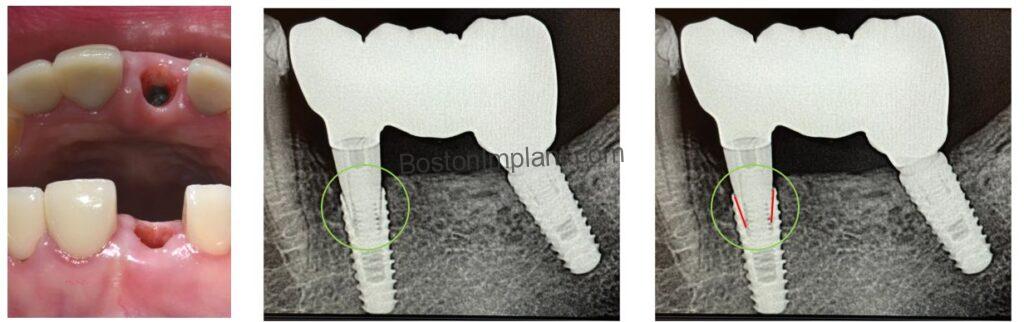 Finally, the connection design presents another key difference. The connection of bone-level implants is situated below the gum line, making visual confirmation of a precise abutment-implant fit challenging. This can sometimes lead to unnoticed misfits. (As illustrated in the green circle in the image below, a gap can exist between the abutment and the implant.)